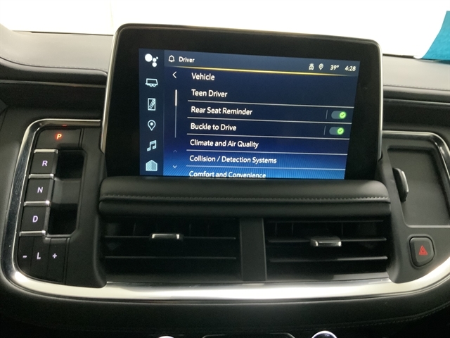 Buckle to Drive prevents vehicle from being shifted out of Park until driver seat belt is fastened; times out after 20 seconds and encourages seat belt use, can be turned on and off in Settings or Teen Driver menu